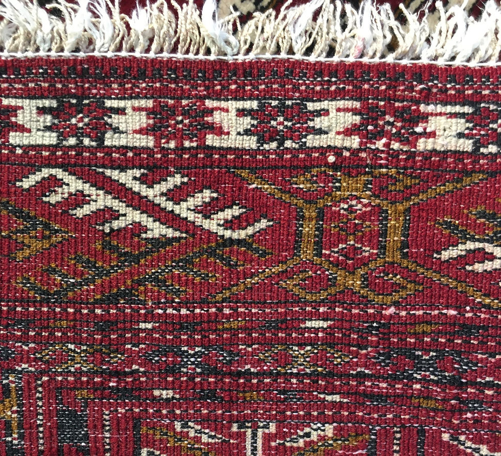 トルクメニスタンの遊牧民にとって、絨毯は家計を支える大切な制作品でした。このような縦糸をシルクにしたハイノットの(目が細かい)絨毯は、顧客や市場のリクエストにこたえたものだとか。Haliというオリエンタルカーペットの専門誌ではそういった研究が主だったと記憶しています。